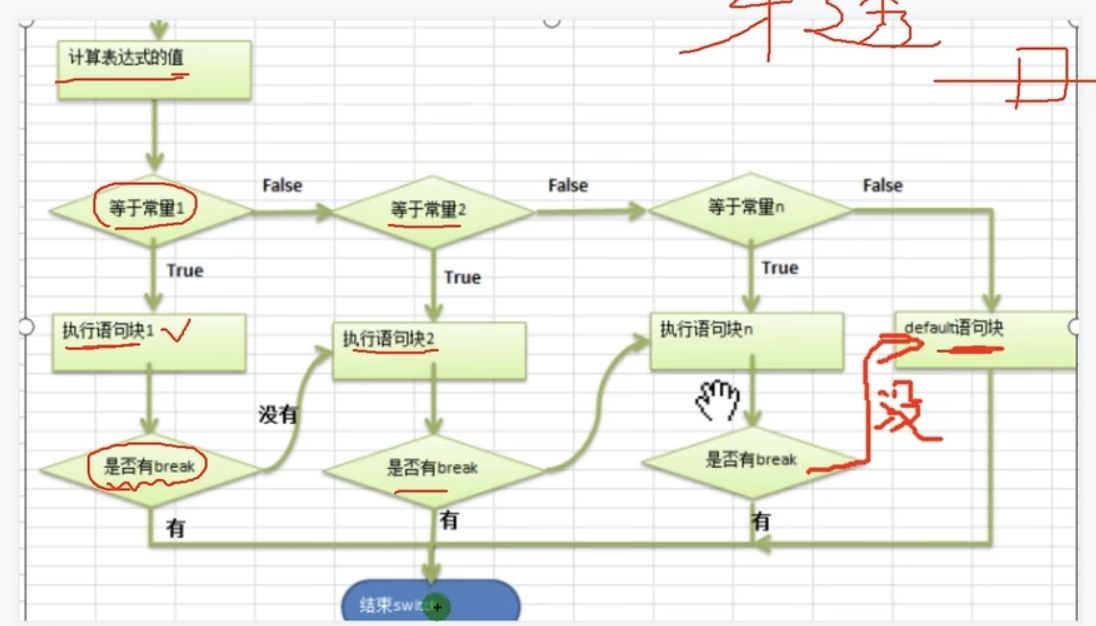 }break 表示退出 switch,如果一个都没匹配上就执行 default