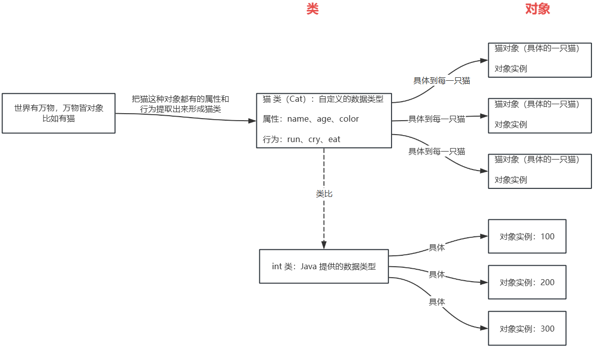 (1)类就是数据类型,比如 Cat