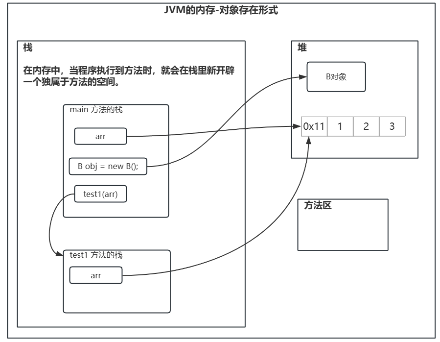 在内存中,当程序执行到方法时,就会在栈里新开辟一个独属于方法的空间。