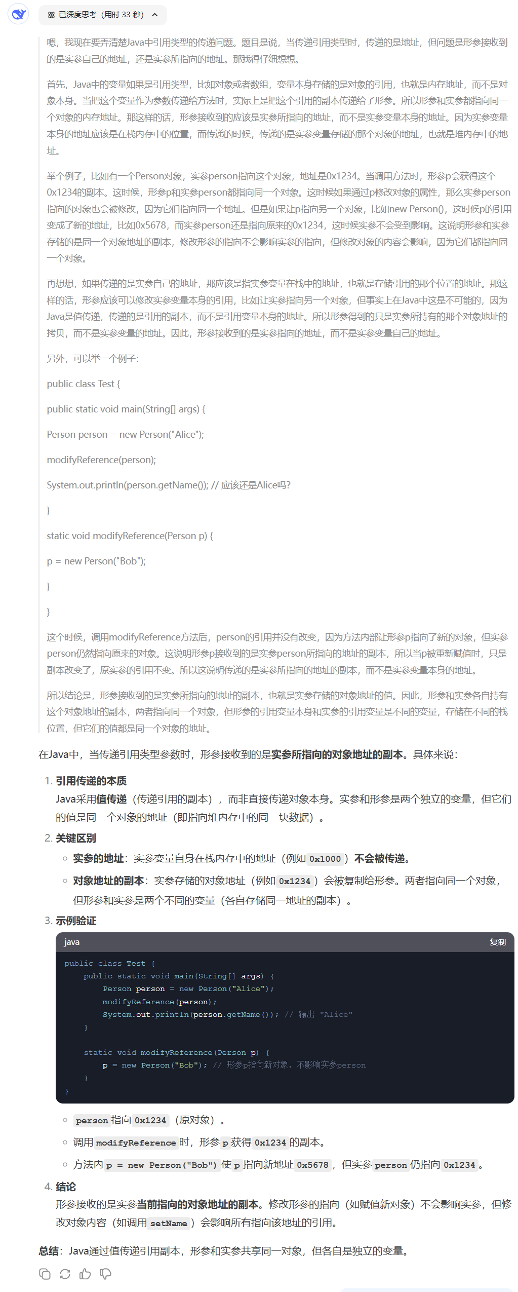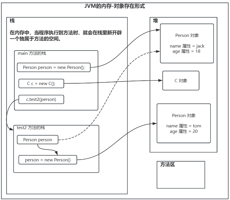 问题:Java 中引用类型的传递传的是地址,比如形参和实参,当传递的是引用类型时,传递的是地址,但是有个问题就是,形参接收到的是实参自己的地址,还是接收到的是实参所指向的地址