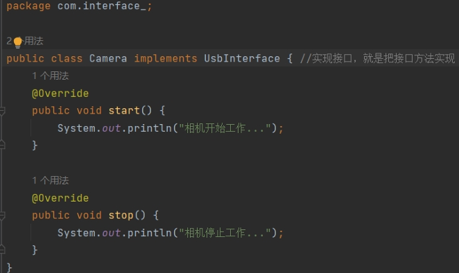 - 有一个铃声接口 Bell,里面有个 ring 方法